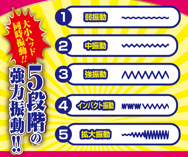 幅4cmビッグヘッドが膣内にジャストフィット!挿入したまま放置できるピストン不要の抜けにくい電池式バイブ。ブラシ付の子機がクリを捉えながら大きな頭でGスポを的確に刺激!ダブルの快感で潮吹きまでまっしぐら♪5段階の強弱振動を搭載し、表面はしっとり柔らかな滑らかシリコンでコーティング。一人でもカップルでも楽しめる、シンプル操作の2点責めバイブ。単4電池を2本使用