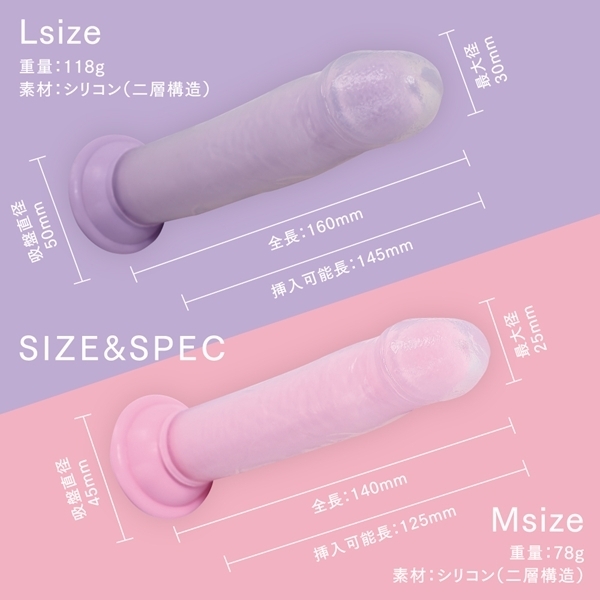 芯のある構造と柔らかな外層が特長のリアル仕様ディルドです♪内部には硬めの芯材を使用し、しっかりとした挿入感を実現しています!外側はぷにっと柔らかな素材で包まれており、自然な感触が楽しめます♪中外ともに高品質なシリコン素材を採用し、安全性と耐久性を両立しています!全長約14cm、挿入可能長は約12.5cmと扱いやすいMサイズです♪手に馴染みやすく、初心者から経験者まで幅広くおすすめできます!底面には強力な吸盤が付いており、壁や床にしっかり固定可能です♪安定感があるので、好きな姿勢で安心して使用できます!クリア×ピンクのカラーリングで見た目も可愛く、気分も上がるデザインです♪しっかり固定&やわらか仕上げで、使いやすさと楽しさを両立したアイテムです!毎日のセルフケアに取り入れやすい、実用性の高い一本です♪ |