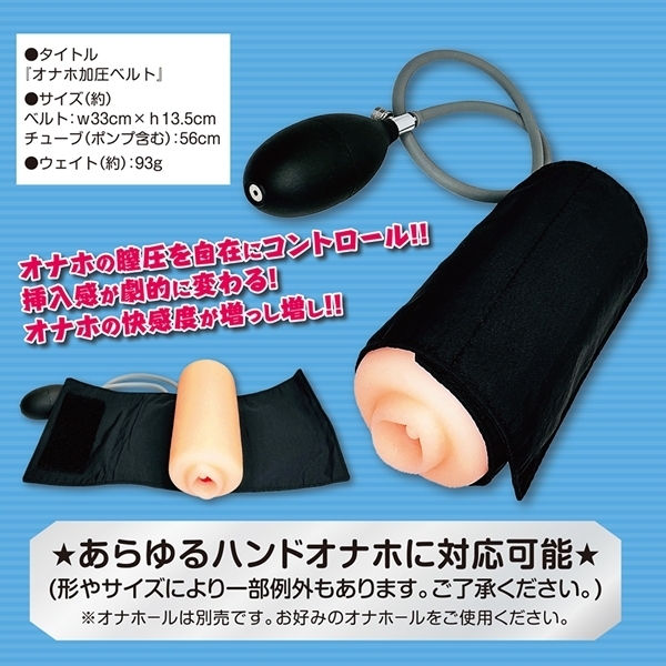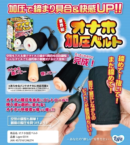 お使いのオナホに巻くだけで締まり具合を自在に調整できるサポートグッズです♪ベルトを巻いて空気を入れるだけの簡単操作で、内部に圧をかけられます!加圧することで挿入感が変化し、刺激の質を自分好みにカスタマイズできます♪スカスカに感じていたオナホも、締まりのある肉厚仕様に変身します!すでに満足していたオナホも、加圧によってさらに快適な使用感が得られます♪空気の出し入れもワンタッチで簡単に操作可能です!多くのハンドタイプオナホに対応する巻き幅で、汎用性も抜群です♪挿入・加圧・解放のサイクルを繰り返すことでトレーニングとしても使用できます!本体は軽量で扱いやすく、収納や持ち運びにも便利な仕様です♪自分だけの締まりポイントを見つけて、新しいオナホ体験を楽しみましょう♪※ご使用時は加圧しすぎにご注意ください! |